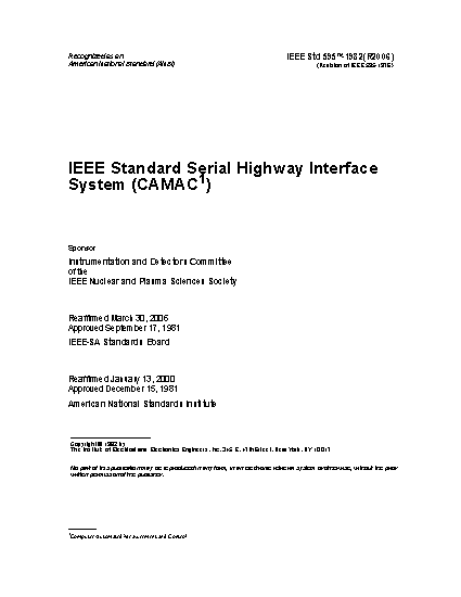 IEEE Standard Serial Highway Interface System (CAMAC) (Computer Automated Measurement and Control)