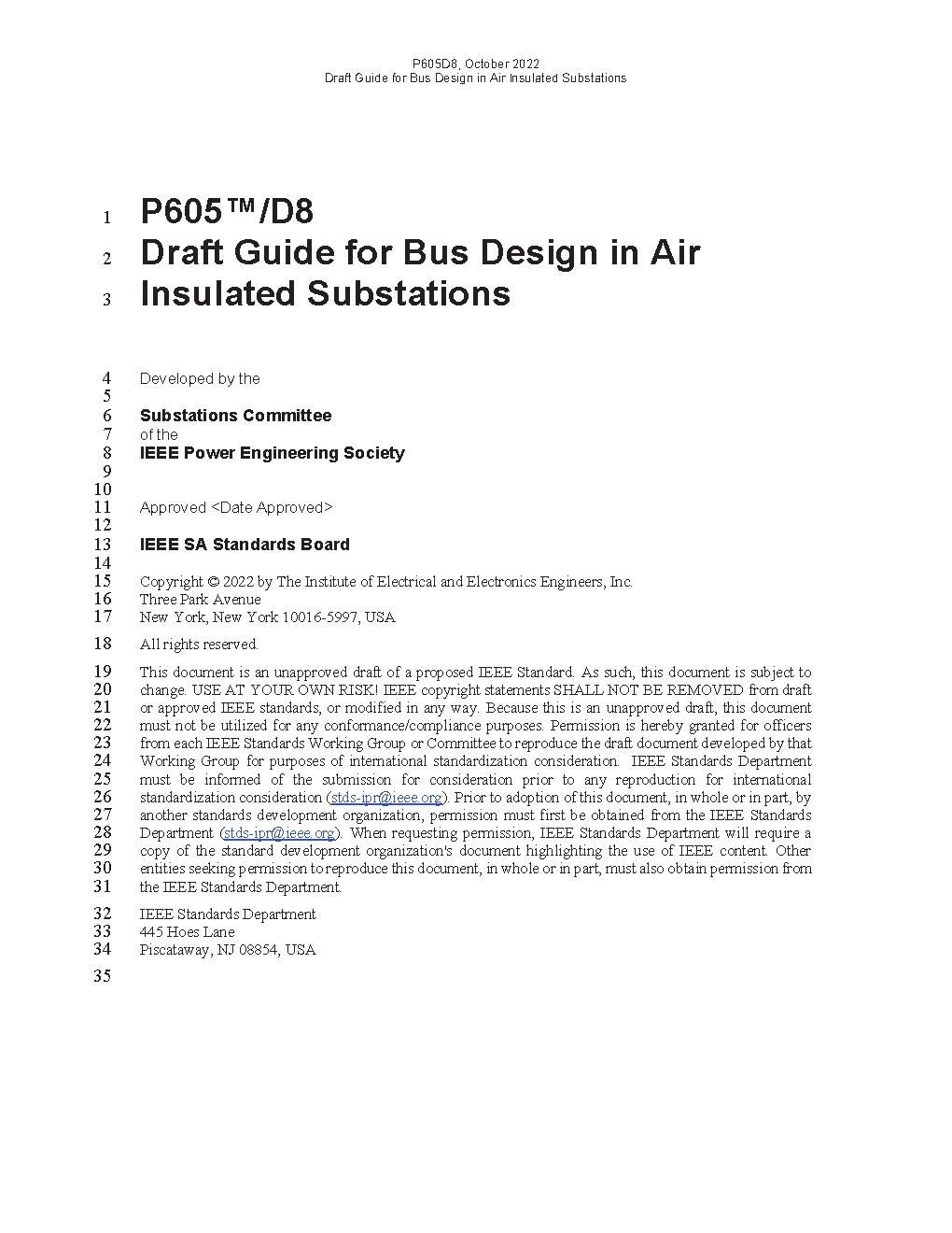 The information in this design guide is applicable to both rigid bus and strain bus designs for outdoor and indoor,air-insulated, alternating current substations. Ampacity, radio influence, vibration, and electromechanical forces resulting from gravity, wind, fault current, and thermal expansion are considered. Design criteria for conductor and insulator strength calculations are included. This guide does not consider the following: a) The electrical criteria for the selection of insulators (see IEEE Std 1313.2-1999TM [B22]) b) The seismic forces to which the substation may be subjected (see IEEE Std 693TM-2005 and IEEE Std 1527TM-2006) c) The design of mounting structures d) Design considerations for contaminated environments (see IEEE Std 1313.2-1999 [B22]) e) Installation methods f) Design of direct current buses