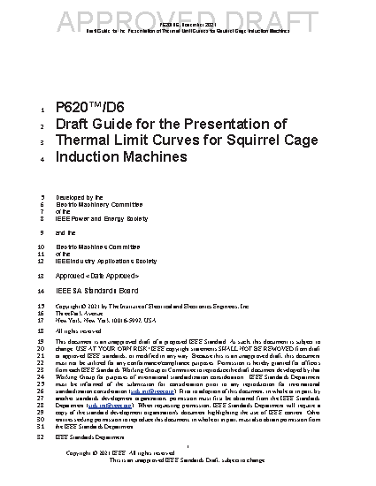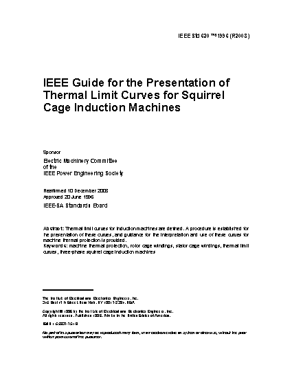This guide applies to three-phase squirrel cage induction machines, 250 hp (200 kW) and above and designed for specified load and application conditions. This guide provides a consistent way to show how the thermal limit curves for squirrel cage induction machines are to be presented.