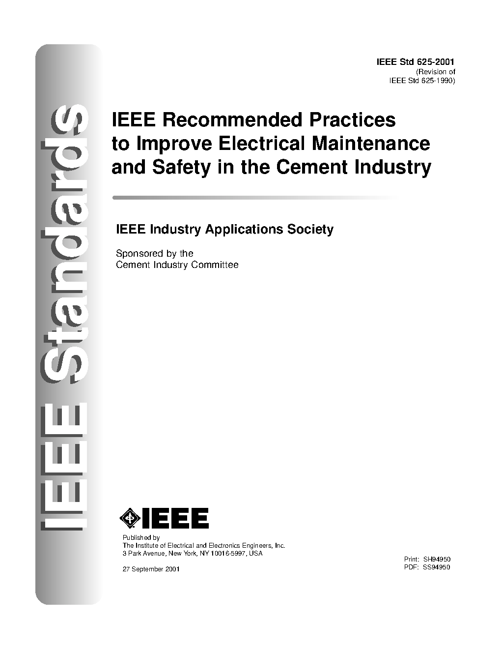 IEEE Recommended Practice to Improve Electrical Maintenance and Safety in the Cement Industry