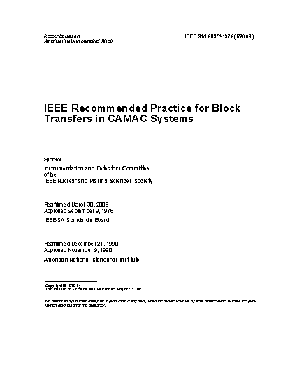 IEEE Recommended Practice for Block Transfers in CAMAC Systems (Computer Automated Measurement and Control)