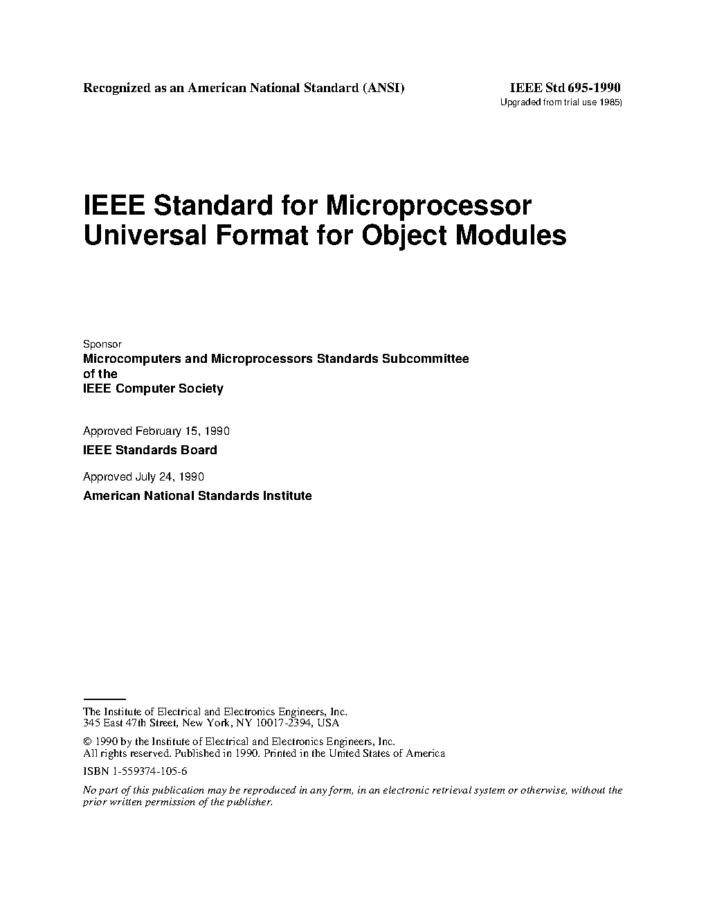 IEEE Standard for Microprocessor Universal Format for Object Modules