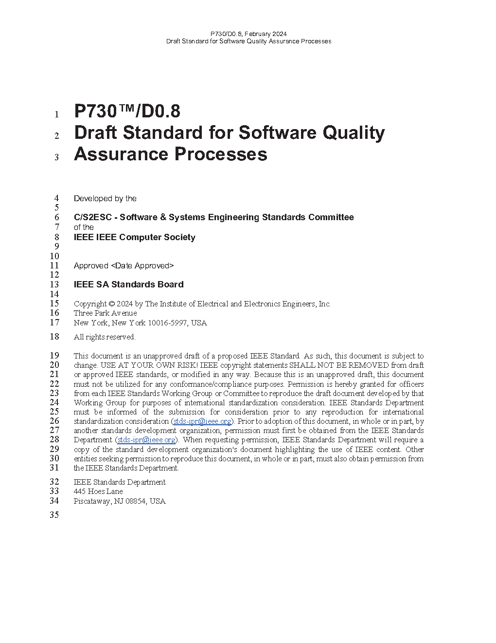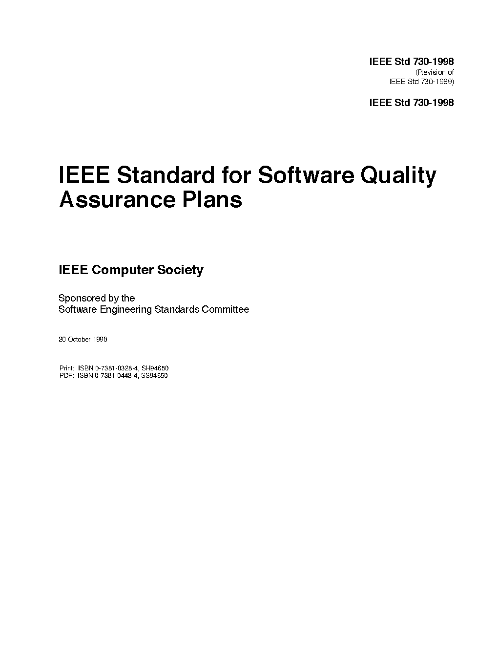 This standard establishes a required minimum contents for Software Quality Assurance plans. It is directed toward the development and maintenance of critical software, that is, where the failure could cause large financial or social losses. The orientation is toward delineating all of the planned and systematic actions on a particular project that would provide adequate confidence that the software product conforms to established technical requirements. This standard correlates the content of software quality assurance plans as defined in 730 and the content of such plans as defined in IEEE 12207.1.