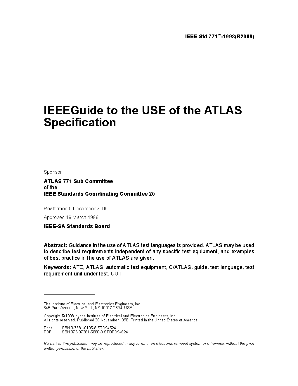 The purpose of this guide is to provide principles of good practice in the use of ATLAS for the writing of test procedures. This advice has been drawn from practical applications in many organizations and a number of companies who are contractually committed to prepare test procedures in ATLAS.