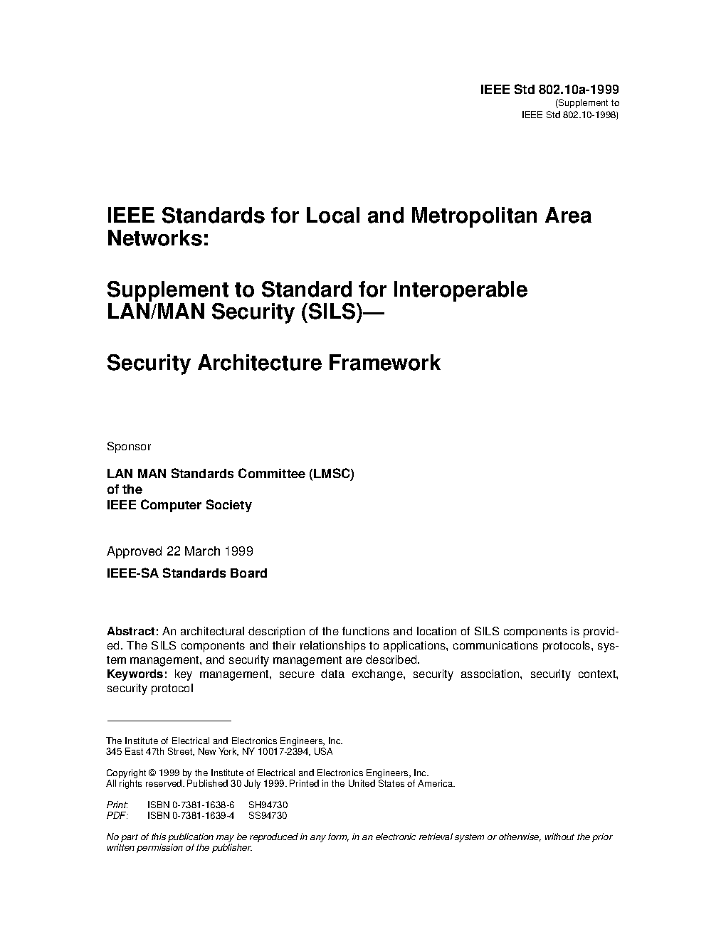 IEEE Standard for Interoperable LAN/MAN Security (SILS): The Model (Clause 1)