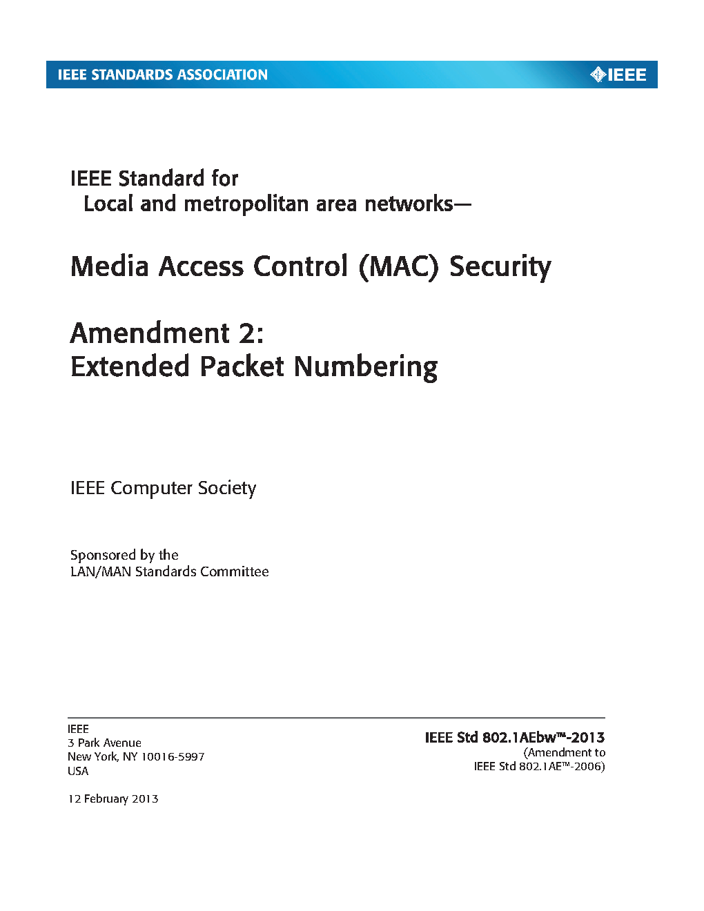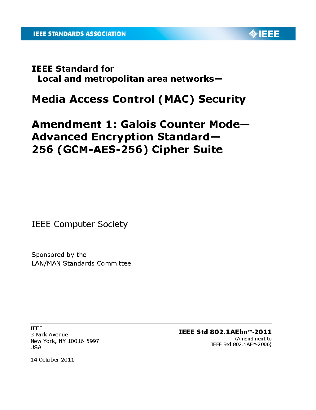 IEEE Standard for Local and Metropolitan Area Networks: Media Access Control (MAC) Security