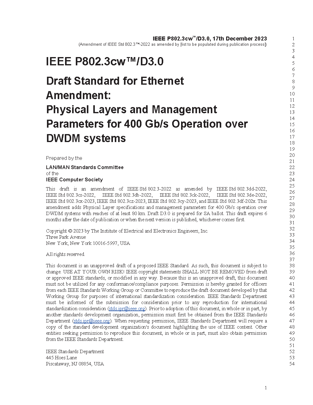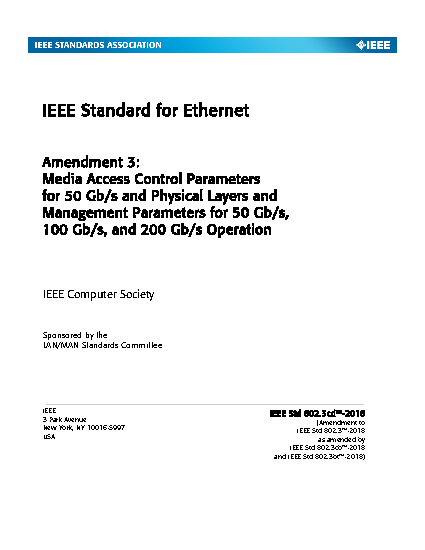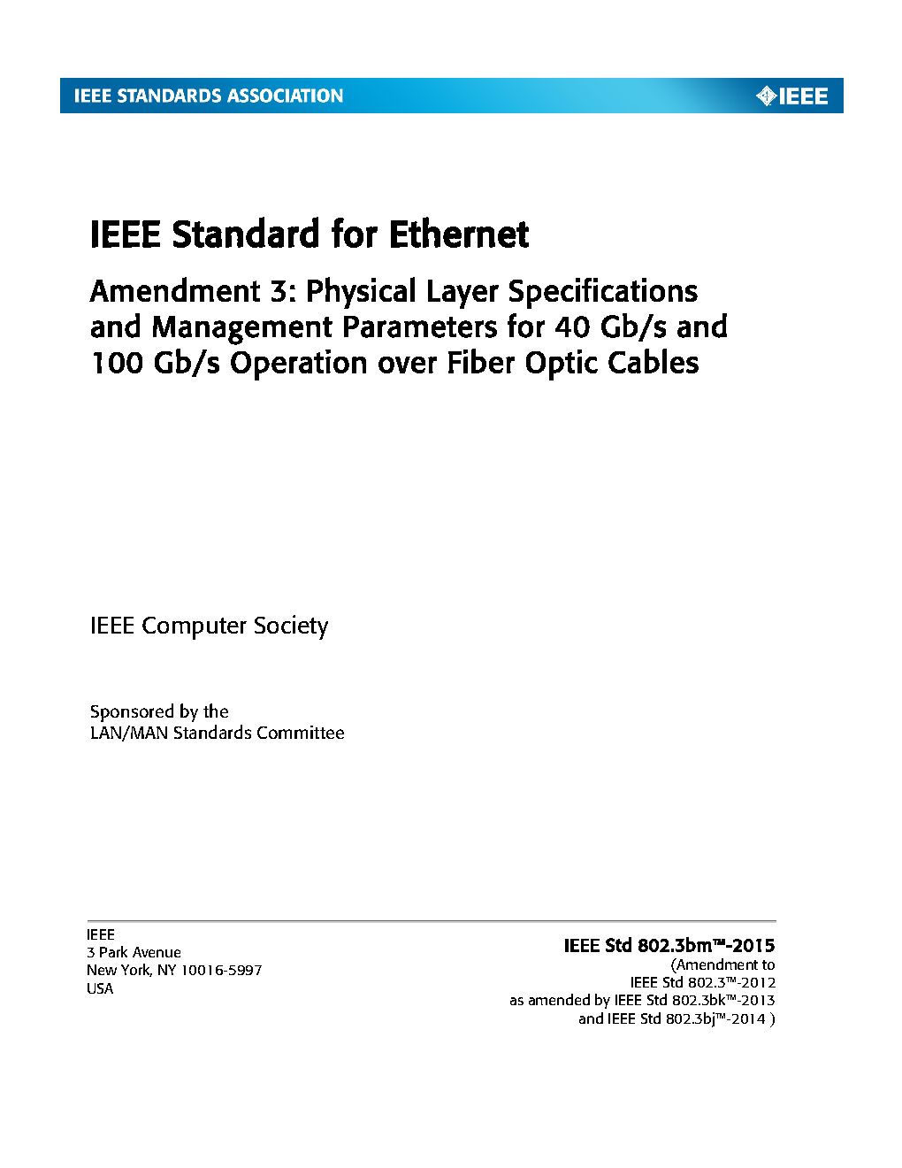 This amendment to IEEE Std 802.3-2015 adds Physical Layer (PHY) specifications and management parameters for 25 Gb/s operation over single-mode fiber at reaches of at least 10 km (25GBASE-LR) and 40 km (25GBASE-ER).