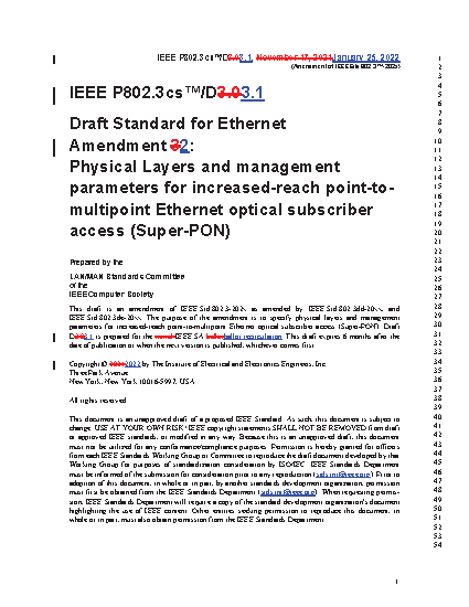 The scope of this project is to add point-to-point single-mode fiber Physical Medium Dependent (PMD) options for serial 25 Gb/s operation at reaches greater than 100 m by specifying additions to, and appropriate modifications of, IEEE Std 802.3.