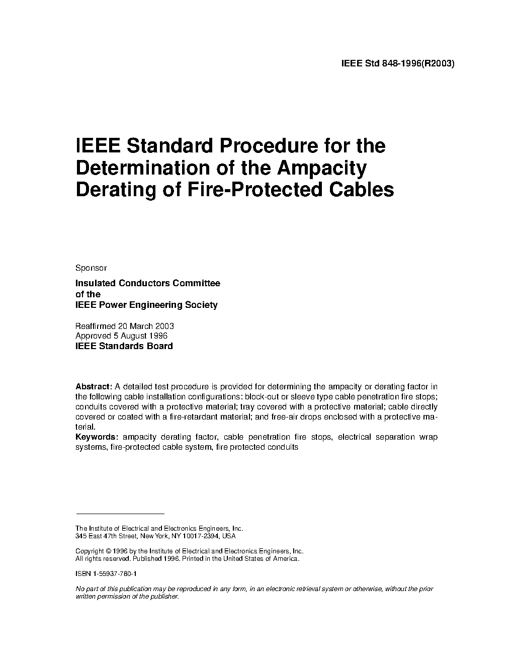 IEEE Standard Procedure for the Determination of the Ampacity Derating Factor for Fire-Protected Cable Systems