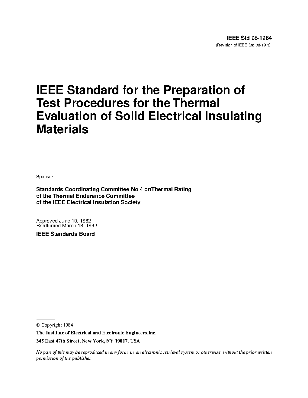 IEEE Standard for the Preparation of Test Procedures for the Thermal Evaluation of Solid Electrical Insulating Materials