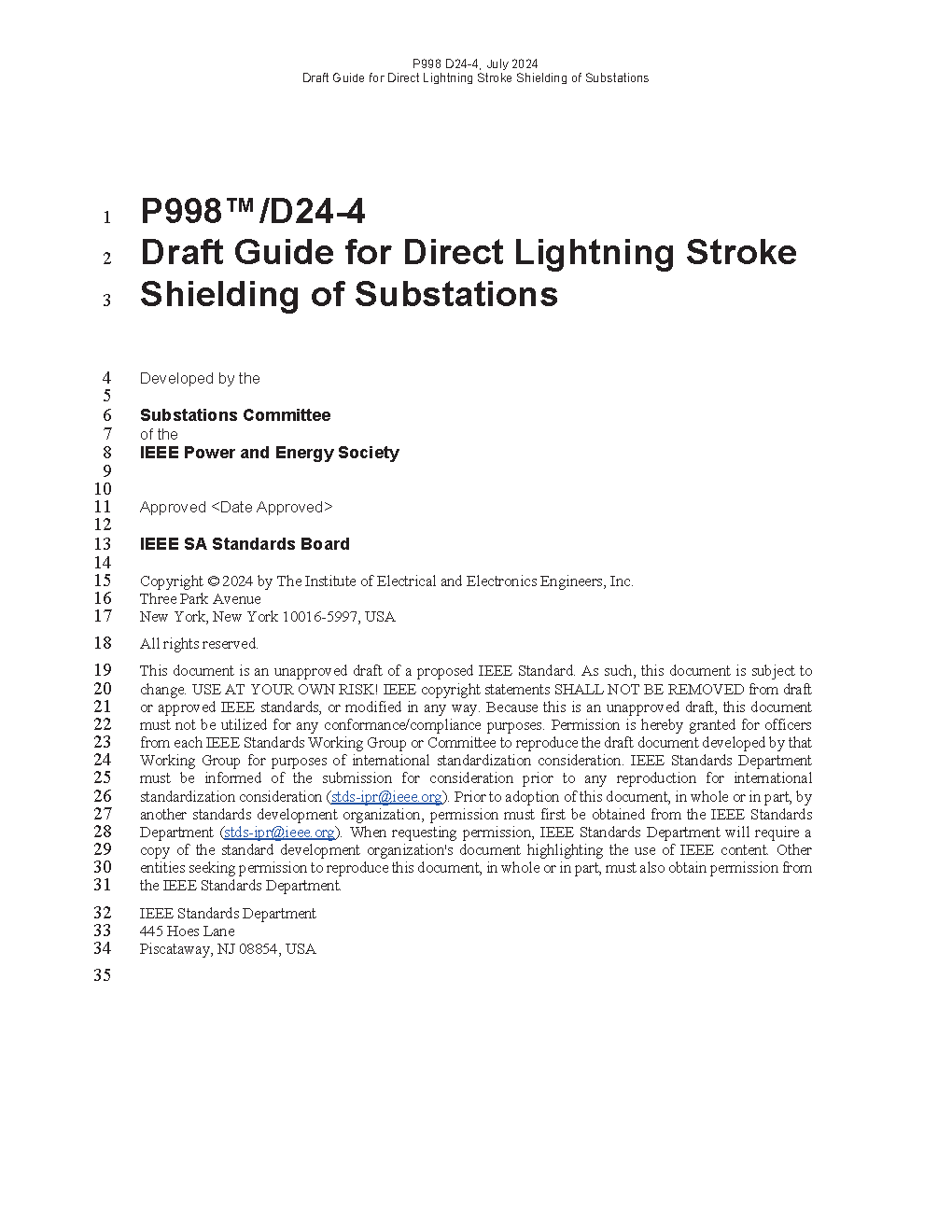 IEEE Guide for Direct Lightning Stroke Shielding of Substations