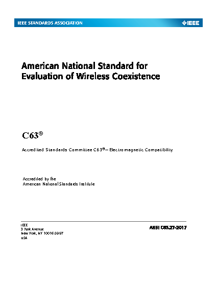 An evaluation process and supporting test methods are provided in this standard to quantify the ability of a wireless device to coexist with other wireless services in its intended radio frequency (RF) environments.