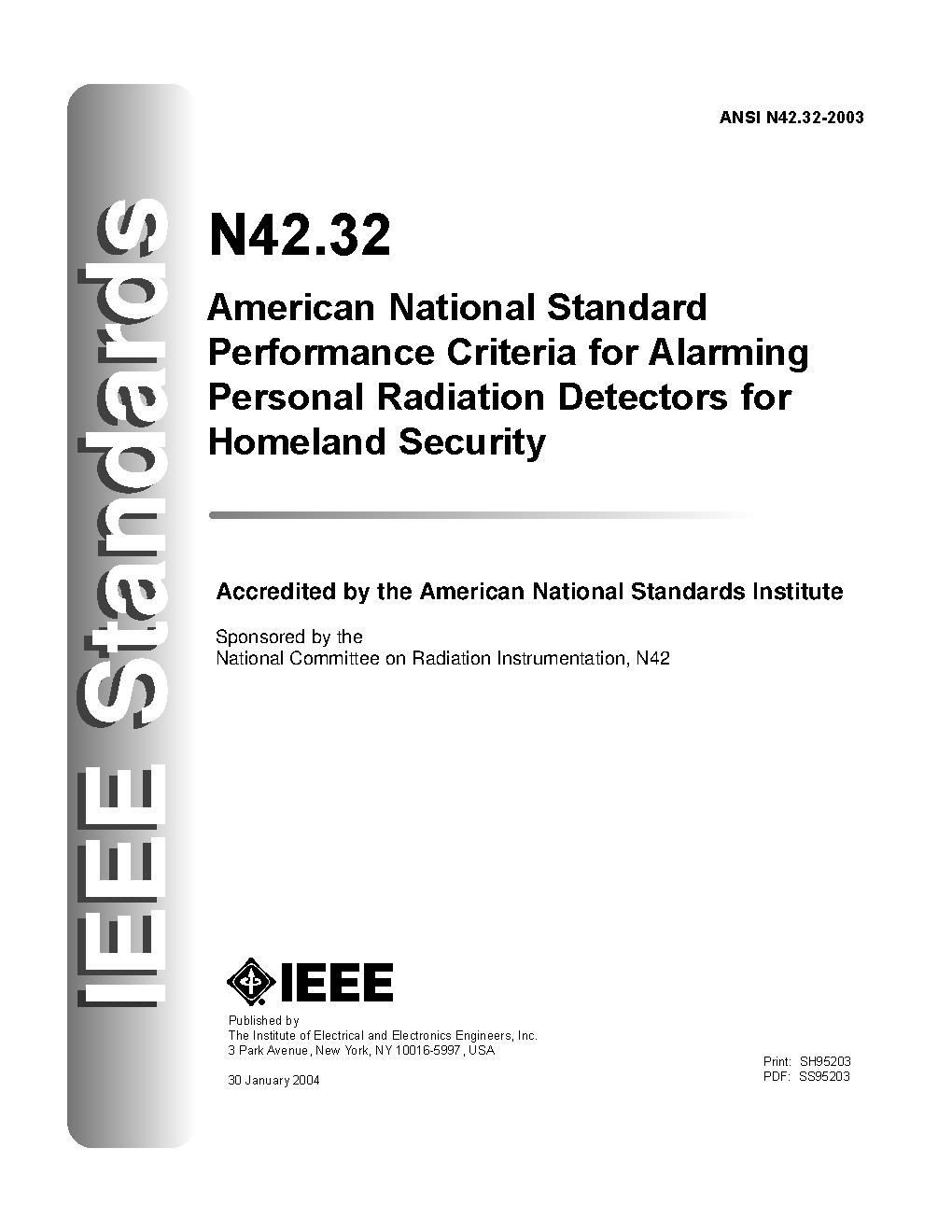 The requirement for 6.6.1, listed in Table 2 (Clause 6) and the test method for 6.6.2 of ANSI N42.32-2016, are no longer applicable. Requirements and test methods in this amendment supersede those in 6.6.1 and 6.6.2. The "IEEE Get Program" grants public access to view and download individual PDFs of select standards at no charge. Visit https://ieeexplore.ieee.org/browse/standards/get-program/page for details.