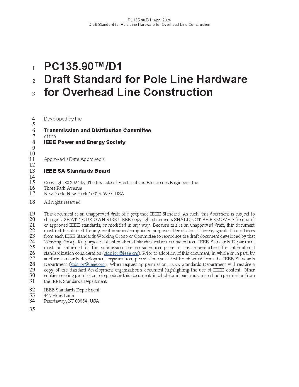 IEEE Standard for Pole Line Hardware for Overhead Line Construction
