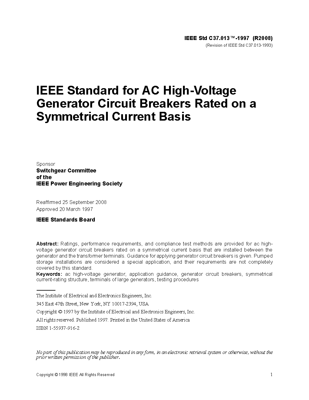 IEEE C37.013:1997 (R2008)
