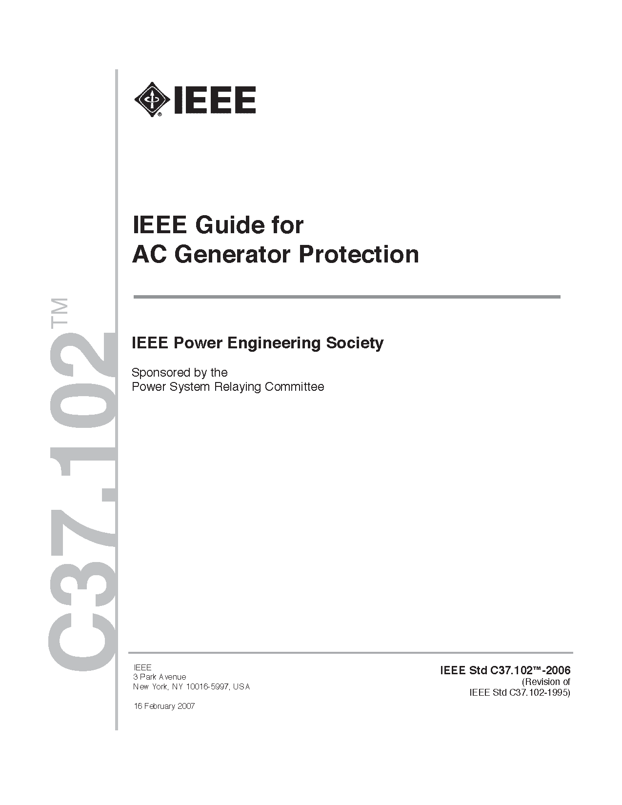 This Guide summarizes the use of relays and devices such that the reader may select the necessary equipment to provide adequate protection for AC generators from short circuits and abnormal operating conditions.