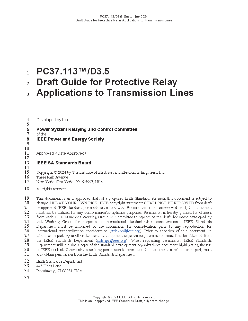 The purpose of this guide is to provide protection engineers with information that helps them to properly apply relays and other devices to protect three-phase high-voltage transmission lines.