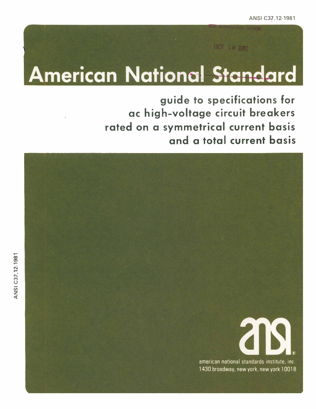 Specifications that apply to all indoor and outdoor types of ac high-voltage circuit breakers rated above 1000 volts are covered in this document. This document is issued only as a guide for use in compiling specifications for ac high-voltage circuit breakers. The imperative mode of the language is illustrative of that used in specifications.