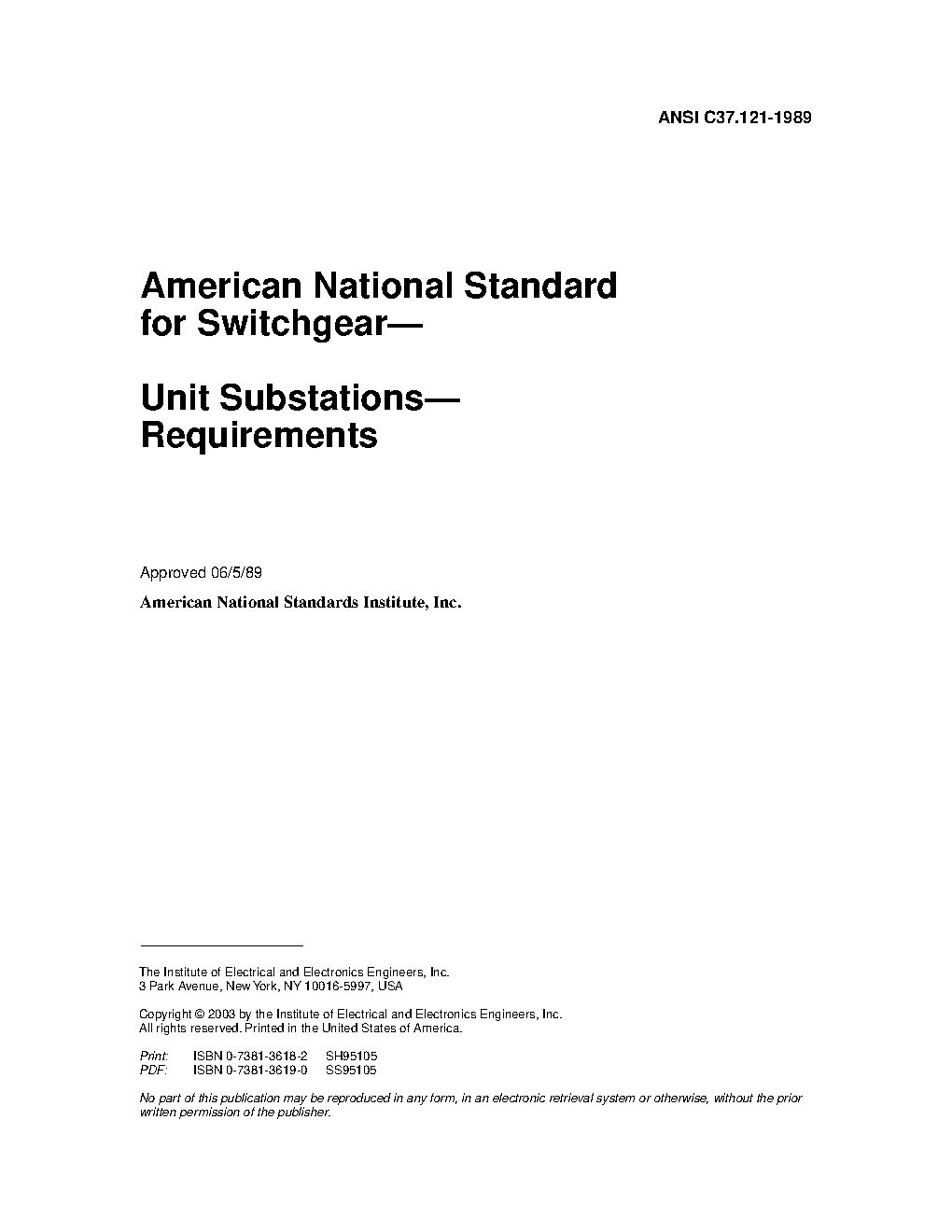 IEEE Guide for Switchgear--Unit Substation--Requirements