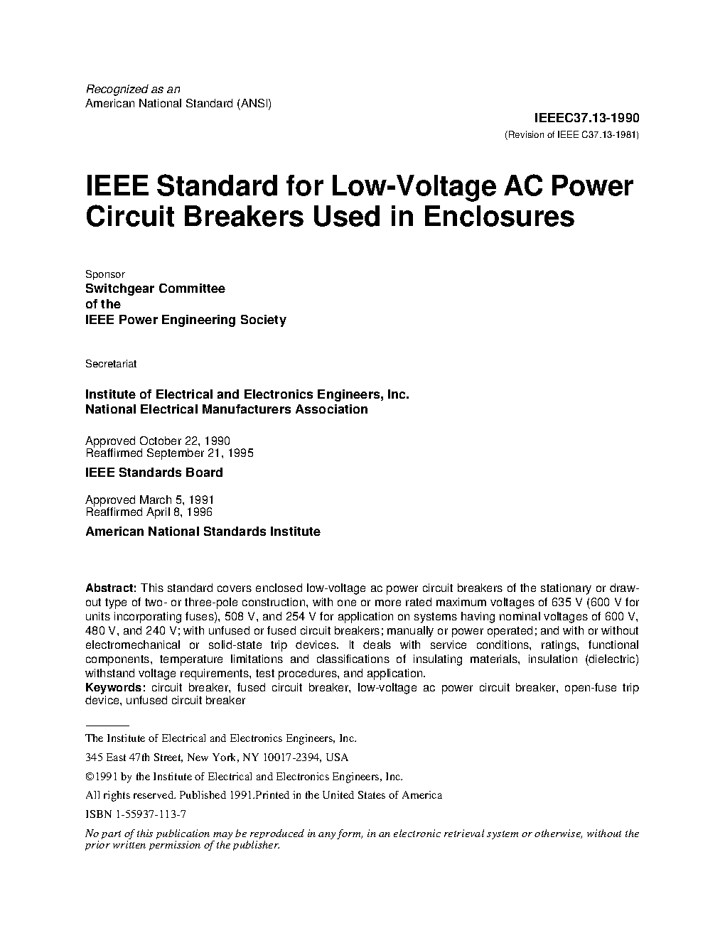 IEEE Standard for Low-Voltage AC Power Circuit Breakers Used in Enclosures