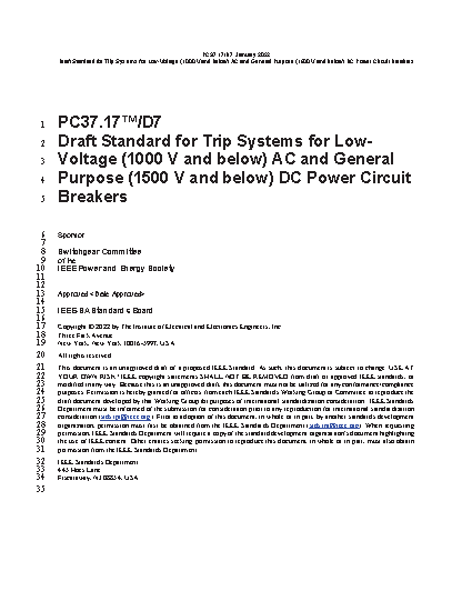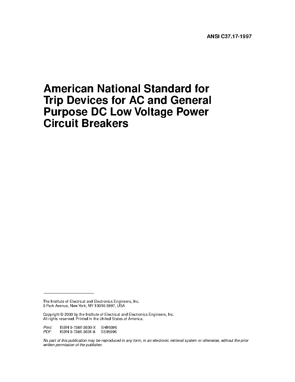 The purpose of this standard is to provide the requirements for direct-acting overcurrent and/or undervoltage protective systems associated with low-voltage power circuit breakers.
