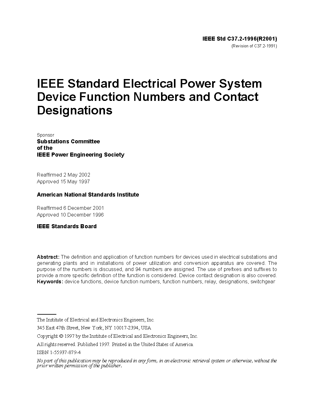 IEEE C37.2:1991