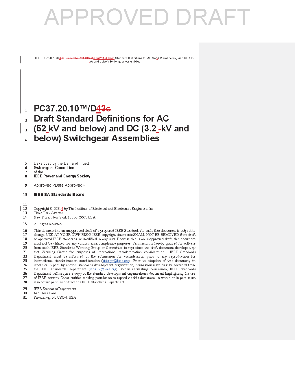 IEEE Standard Definitions for AC (52 kV and below)and DC (3.2 kV and below) Switchgear Assemblies