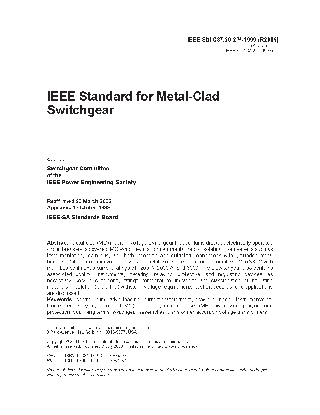 IEEE Standard for Metal-Clad and Station-Type Cubicle Switchgear
