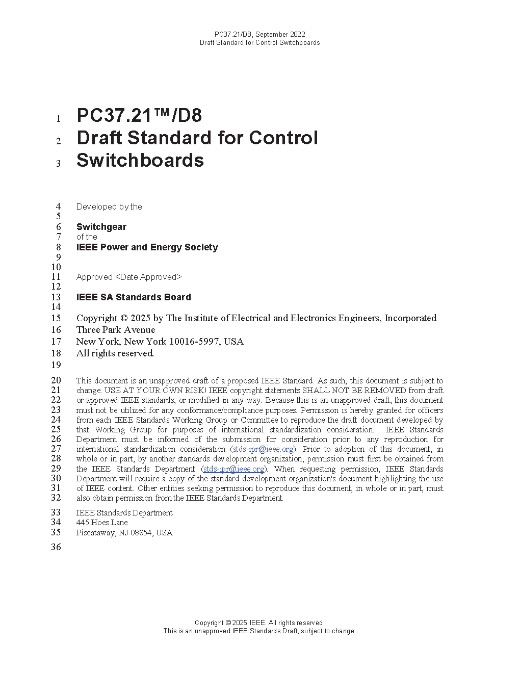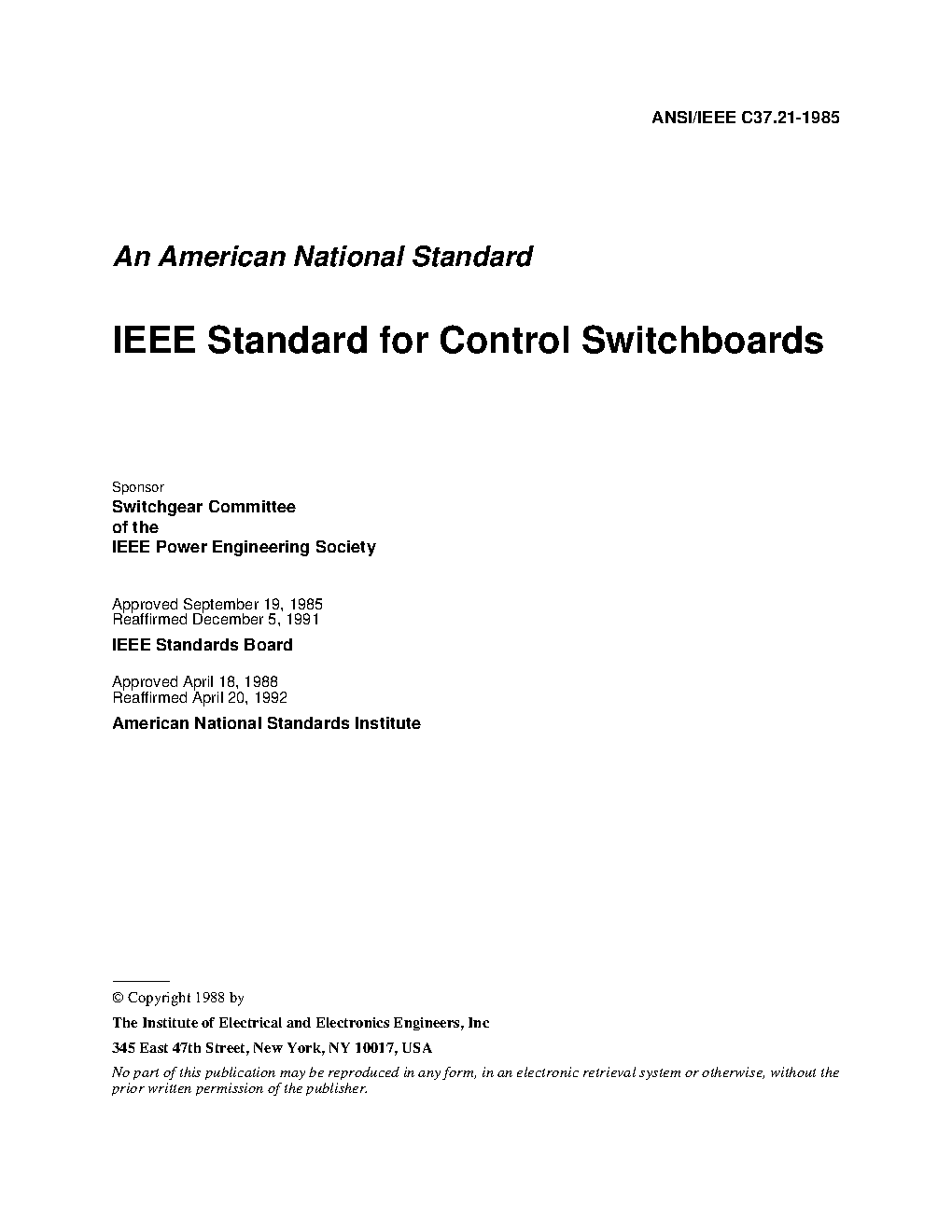 IEEE Standard for Control Switchboards