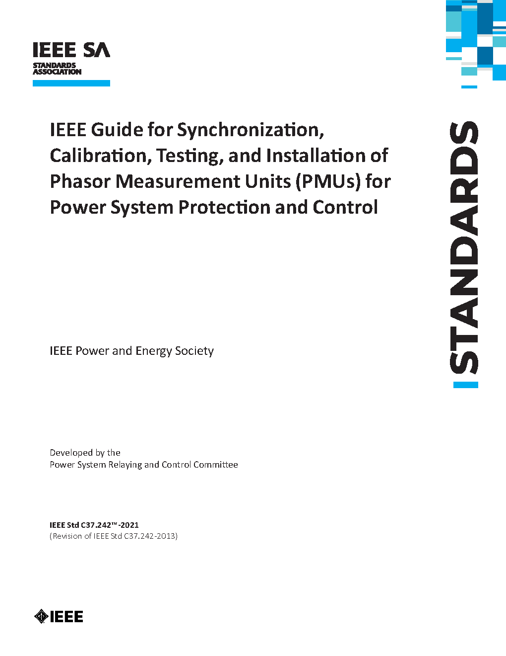 This guide provides guidance for synchronization, calibration, testing, and installation of phasor measurement units (PMUs) applied in power system protection and control. The following are addressed in this guide: a) Considerations for the installation of PMU devices based on application requirements and typical bus configurations. b) Techniques focusing on the overall accuracy and availability of the time synchronization system. c) Test and calibration procedures for PMUs for laboratory and field applications. d) Communications testing for connecting PMUs to other devices including Phasor Data Concentrators (PDCs).
