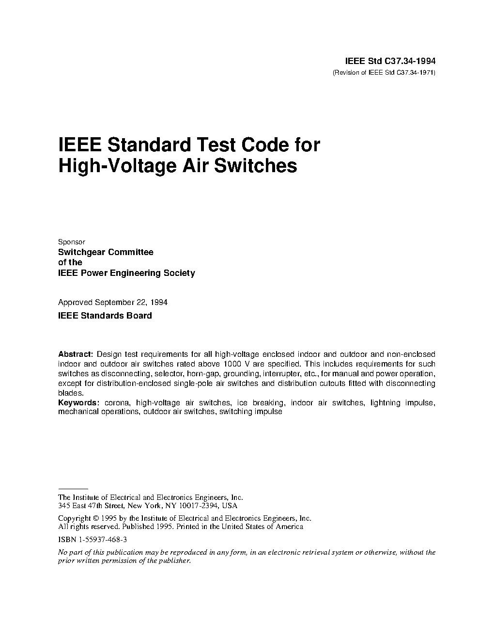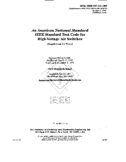 IEEE Standard Test Code for High-Voltage Air Switches, (Supplement: Ice Tests)