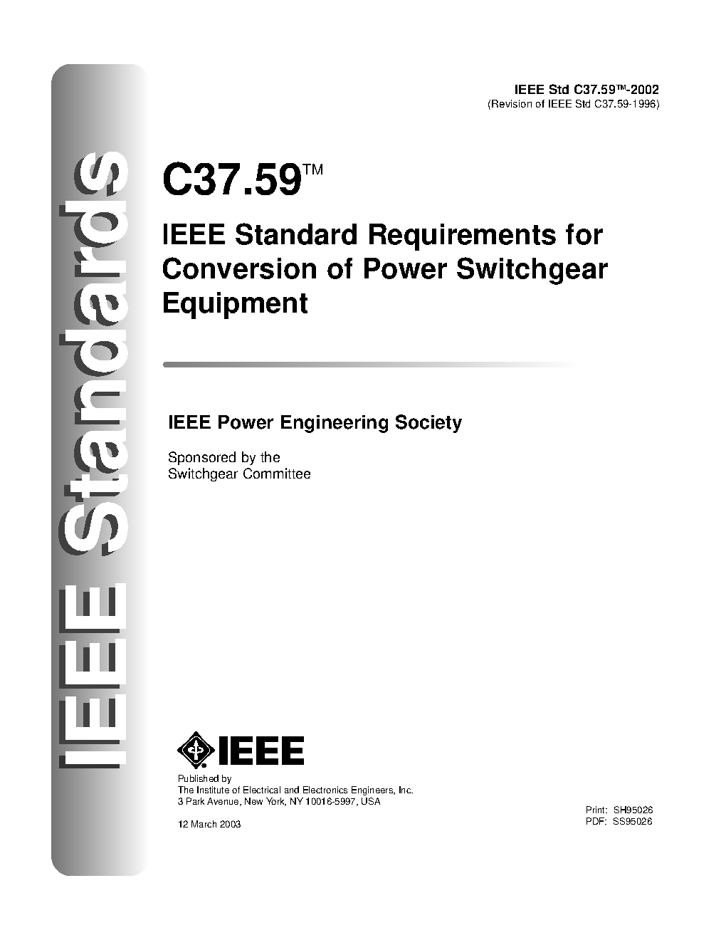 This standard covers power switchgear equipment that is converted from a qualified design. It provides direction and guidance in those conversions and specifies required design verification in accordance with applicable American National Standards Institute (ANSI), National Electrical Manufacturers Association (NEMA), UL, or IEEE standards.