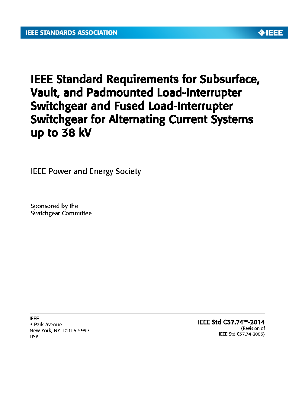 IEEE Standard Requirements for Subsurface, Vault, and Padmounted Load-Interrupter Switchgear and Fused Load-Interrupter Switchgear for Alternating Current Systems up to 38 kV