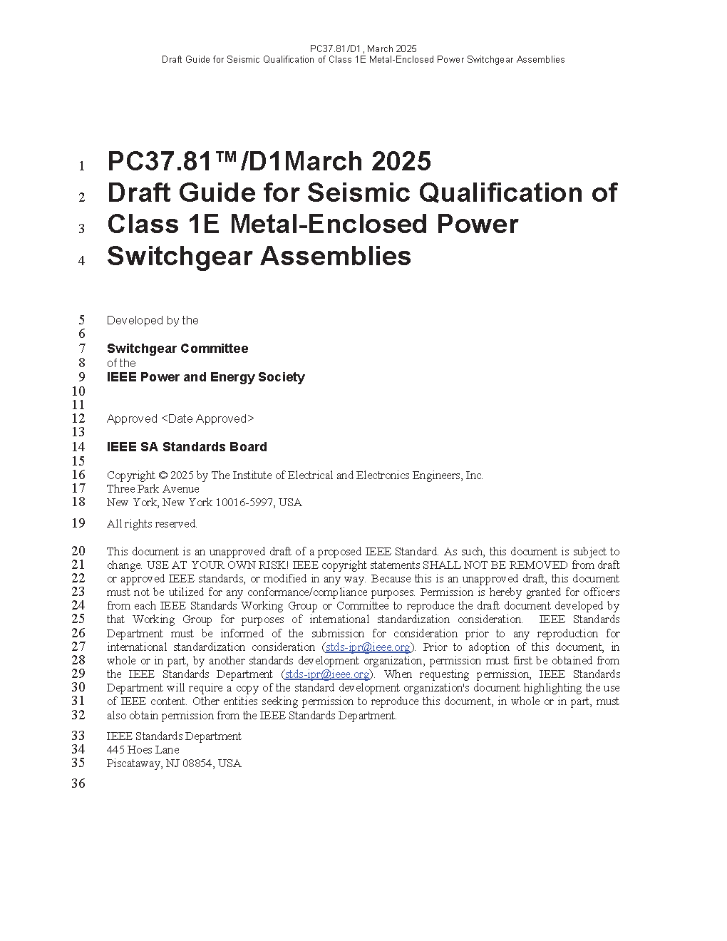 This standard provides specific requirements and guidance for seismic qualification of metal-enclosed power switchgear assemblies. This guide may also be used in other applications in which seismic response of metal-enclosed power switchgear assemblies is a consideration.