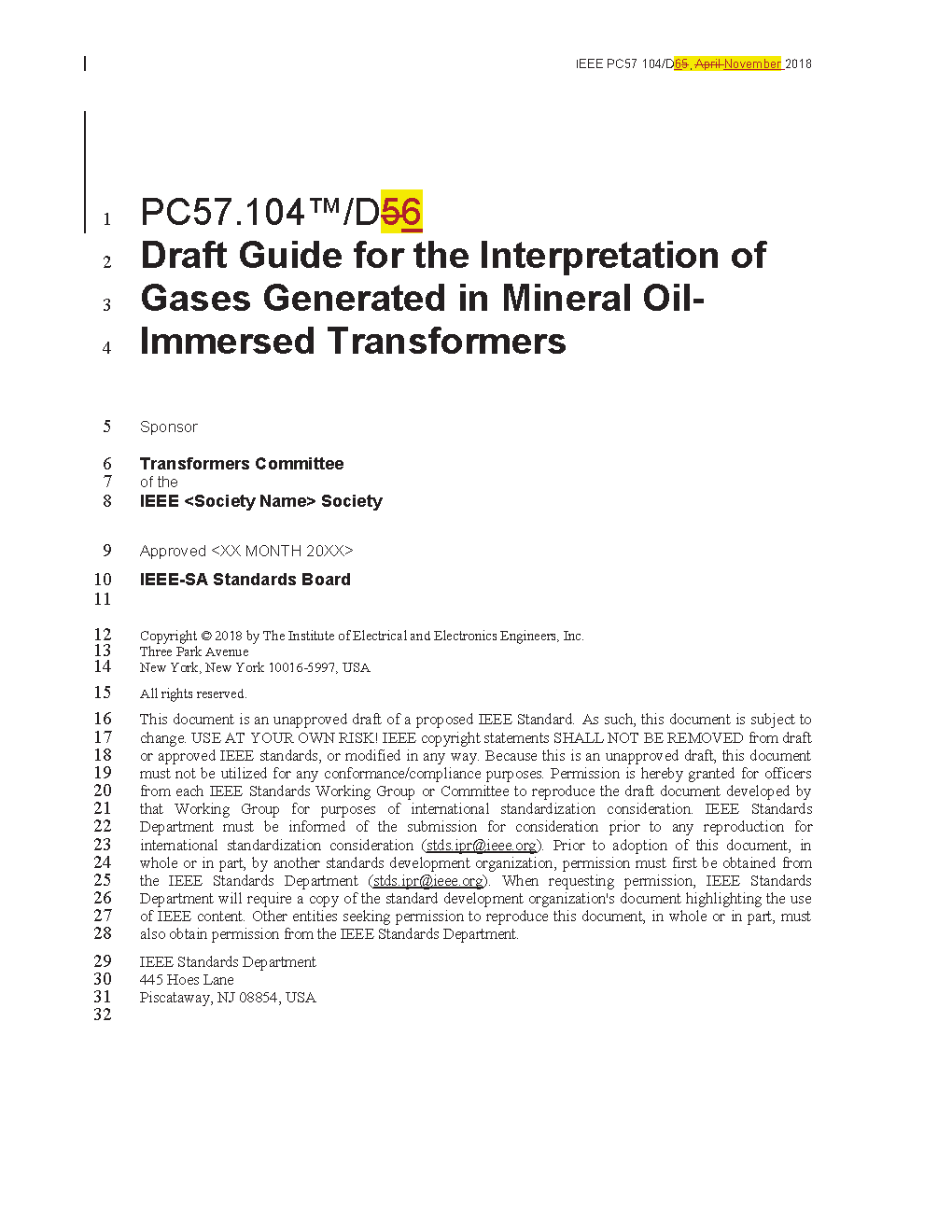 IEEE Draft Guide for the Interpretation of Gases Generated in Oil-Immersed Transformers