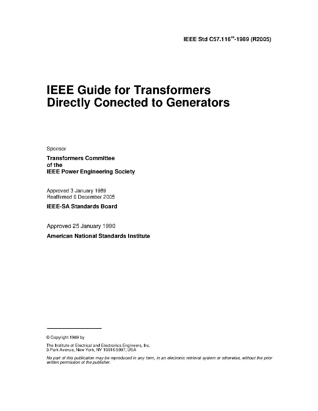 IEEE Guide for Transformers Directly Connected to Generators