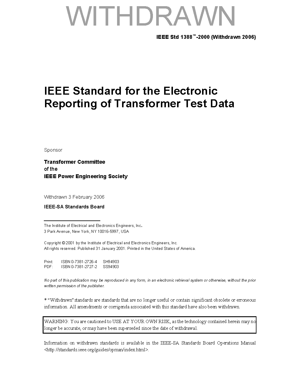IEEE Standard for the Electronic Reporting of Distribution Transformer Test Data