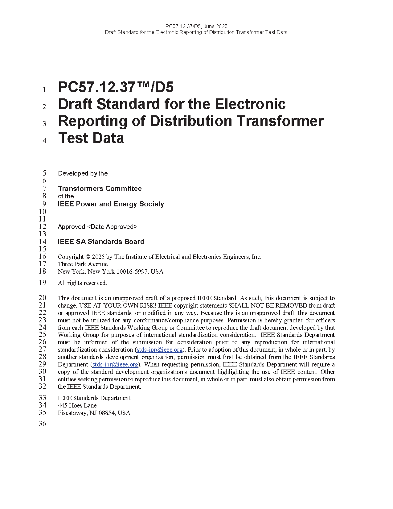 IEEE Standard for the Electronic Reporting of Distribution Transformer Test Data