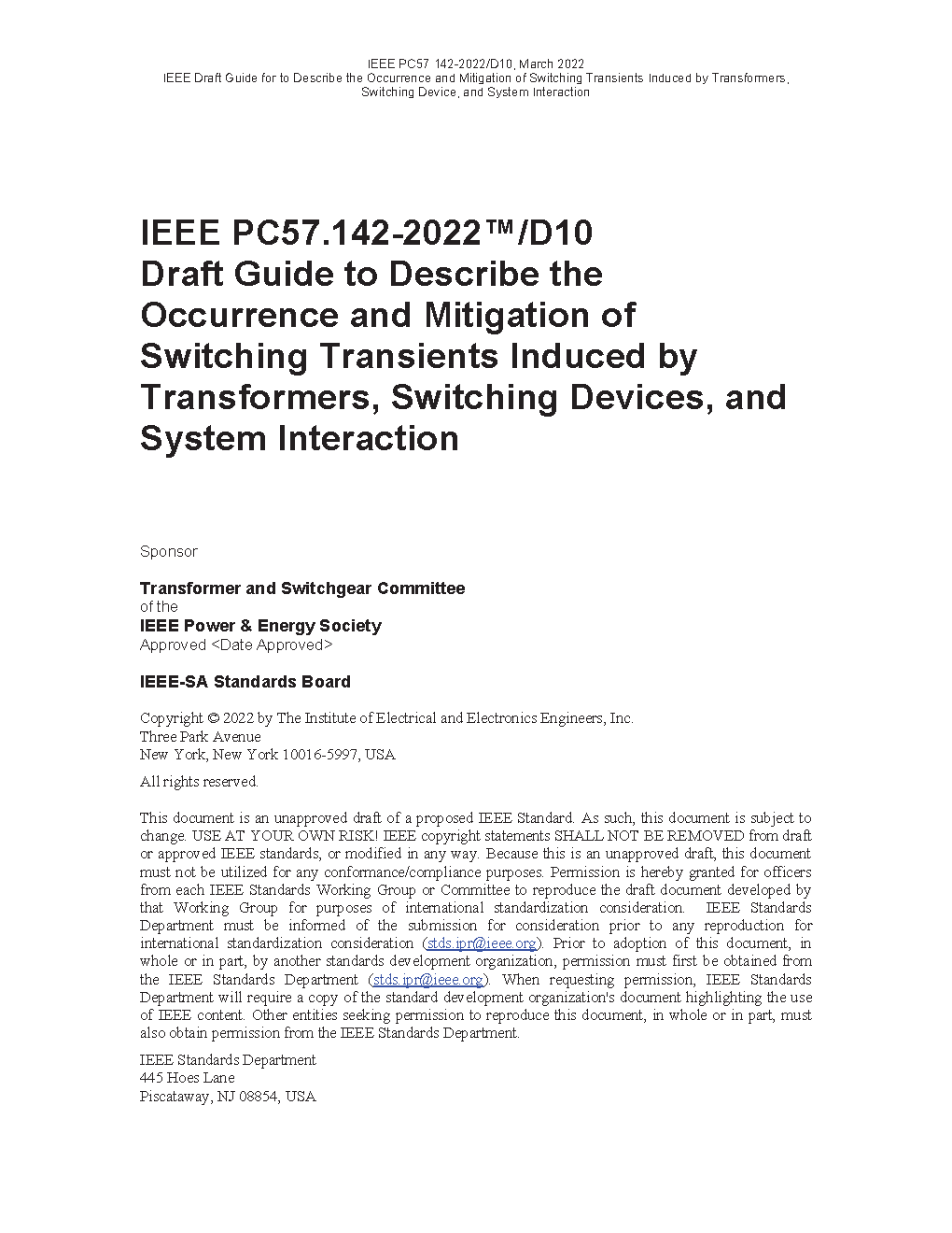 IEEE Guide to Describe the Occurrence and Mitigation of Switching Transients Induced by Transformers, Switching Device, and System Interaction
