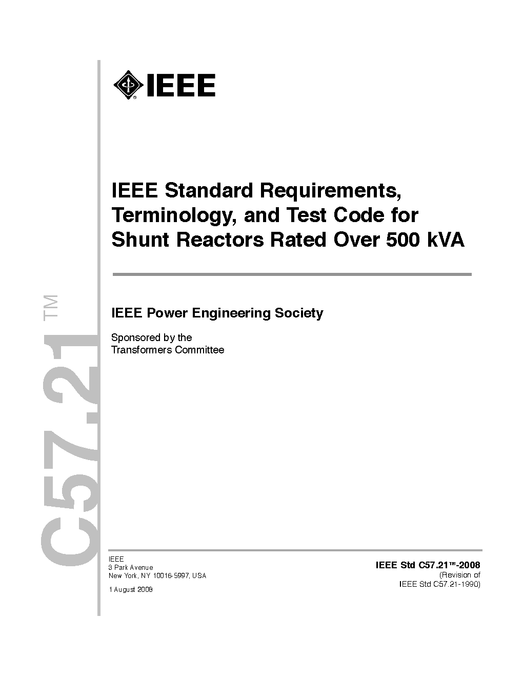 This standard specifies the requirements, terminology, and test code for liquid-immersed and dry-type shunt reactors rated over 500 kVA and for thyristor-controlled shunt reactors used in SVCs.