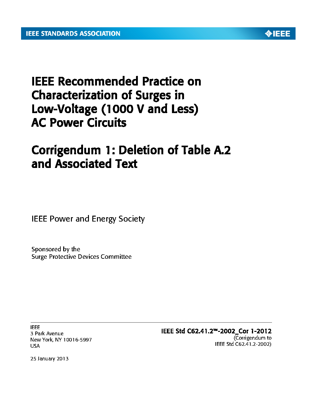IEEE Recommended Practice on Characterization of Surges in Low-Voltage (1000 V and less) AC Power Circuits