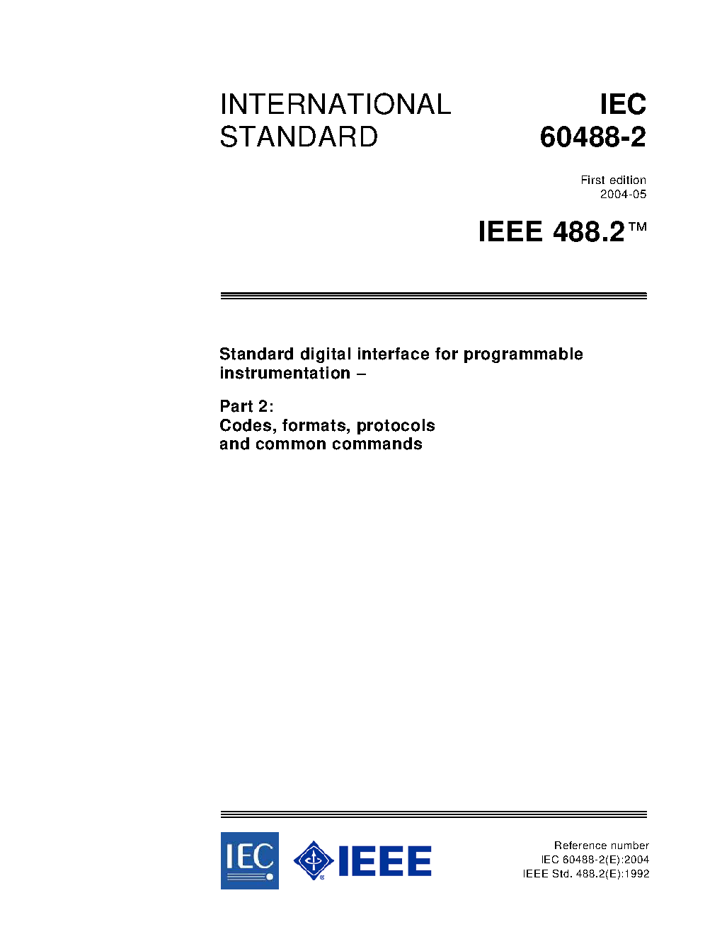 A set of codes and formats to be used by devices connected via the IEEE 488.1 bus is specified. This standard also defines communication protocols that are necessary to effect application-independent and device-dependent message exchanges, and further defines common commands and characteristics useful in instrument system applications. It is intended to apply to small-scale to medium-scale instrument systems comprised mainly of measurement, stimulus, and interconnect devices with an instrumentation controller. The standard may also apply to certain devices outside the scope of the instrument system environment. IEEE 488.1 subsets, standard message-handling protocols including error handling, unambiguous program and response-message syntactic structures, common commands useful in a wide range of instrument system applications, standard status reporting structures, and system configuration and synchronization protocols are covered.