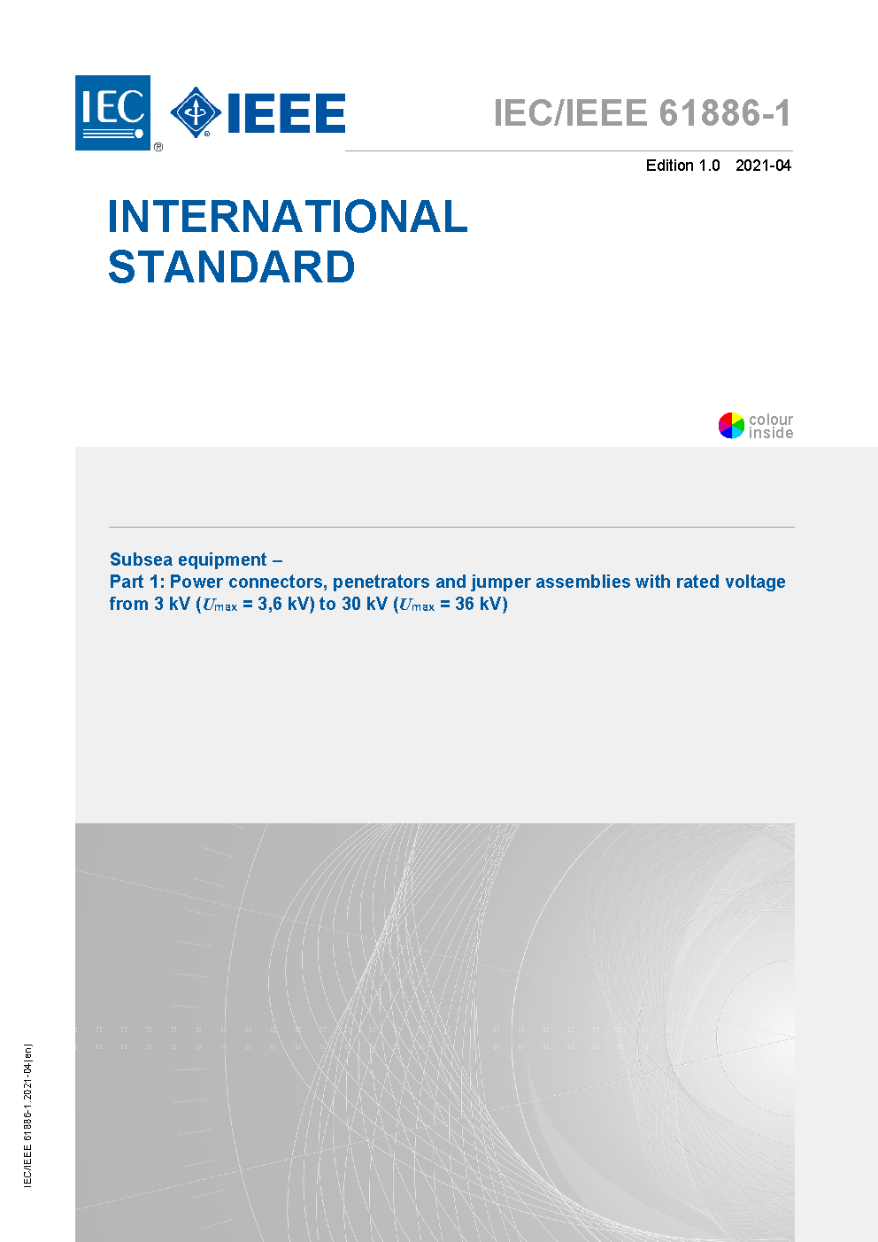 IEEE/IEC International Standard for Subsea equipment--Part 1: Power connectors, penetrators and jumper assemblies with rated voltage from 3 kV (Umax = 3,6 kV) to 30 kV (Umax = 36 kV)