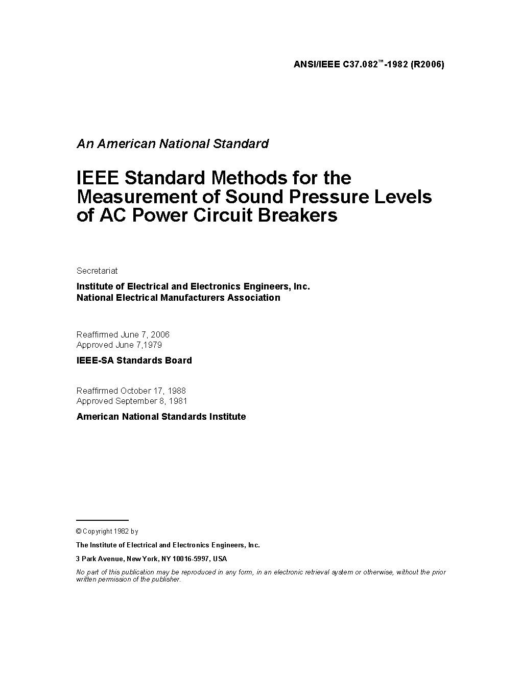 High-voltage switchgear and controlgear -Part 37-082: Standard practice for the measurement of sound pressure levels on alternating current circuit-breakers