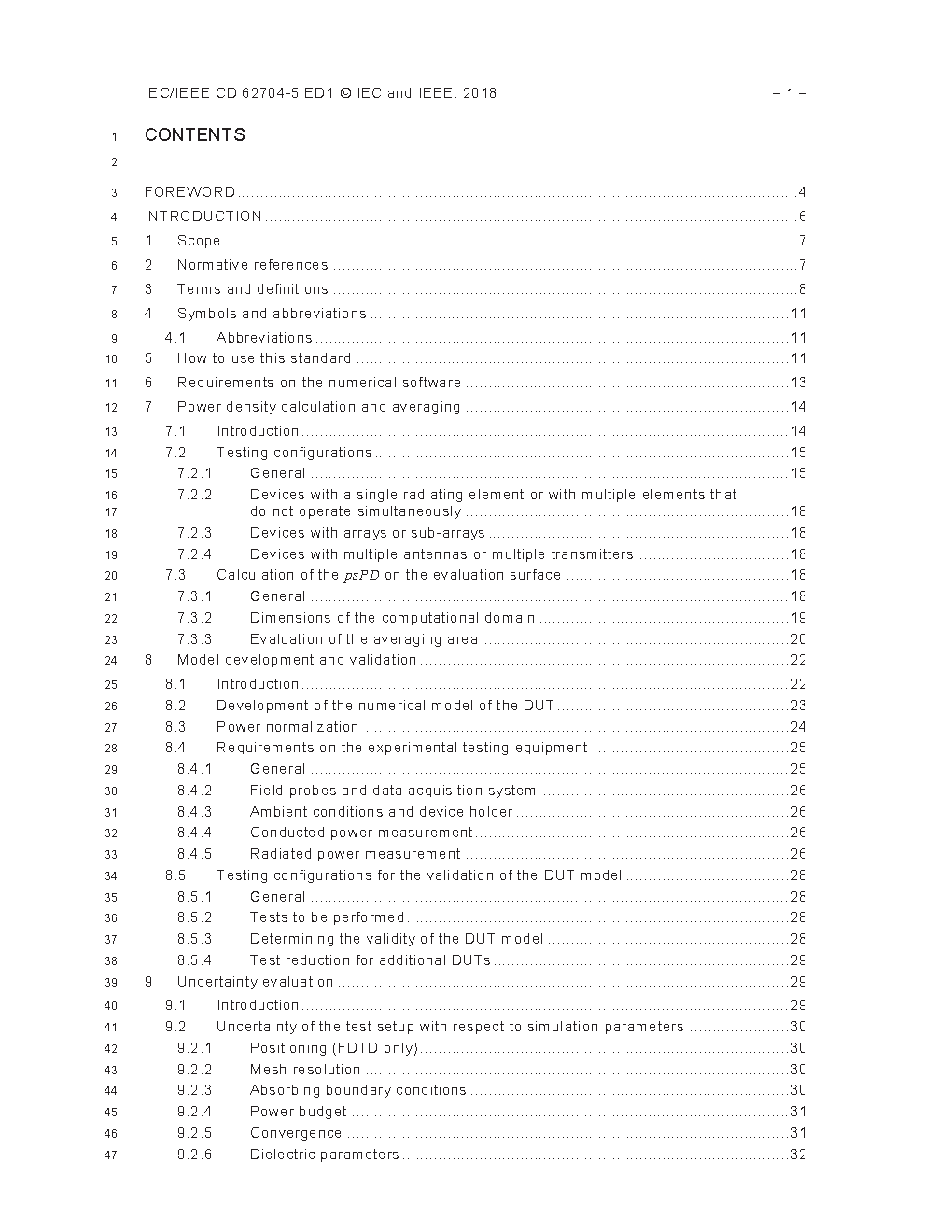 This International Standard specifies computational procedures using Finite-Difference Time-Domain (FDTD) and Finite Element Methods (FEM) to assess the peak and spatial-averaged power density relevant to the human exposure of the human head or body from devices operating between 6 GHz and 300 GHz. It applies to devices with radiating structures at distances up to and including 200 mm. This includes but is not limited to mobile phones, tablets, and wearables. This standard provides a conservative estimate of the power density of the exposure of the head or body for a significant majority of persons during normal use of these devices.