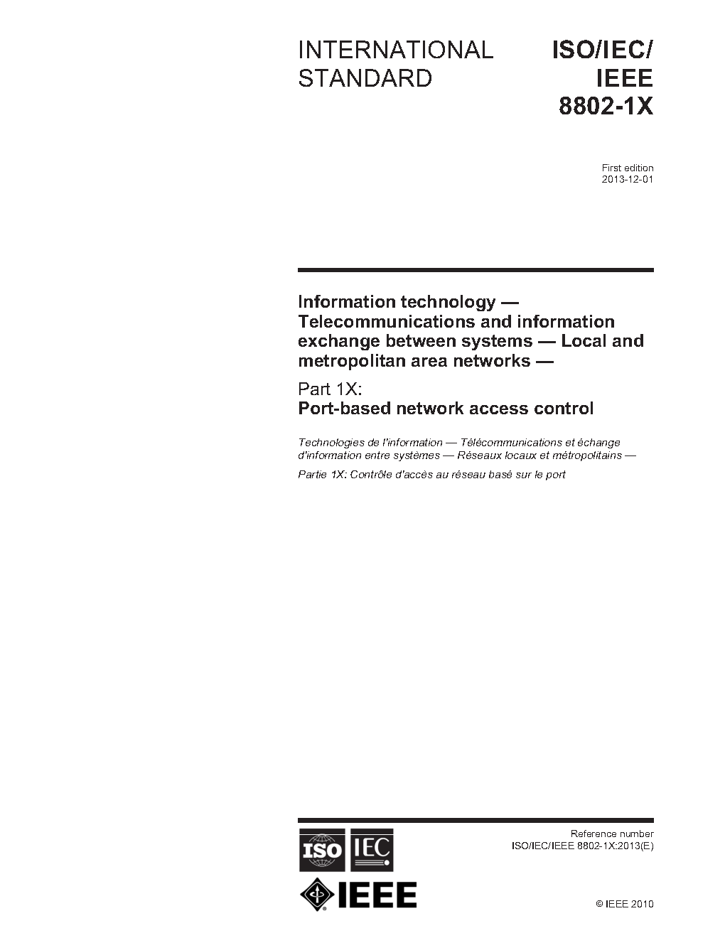 IEEE/ISO/IEC International Standard-Telecommunications and exchange between information technology systems--Requirements for local and metropolitan area networks--Part 1X:Port-based network access control