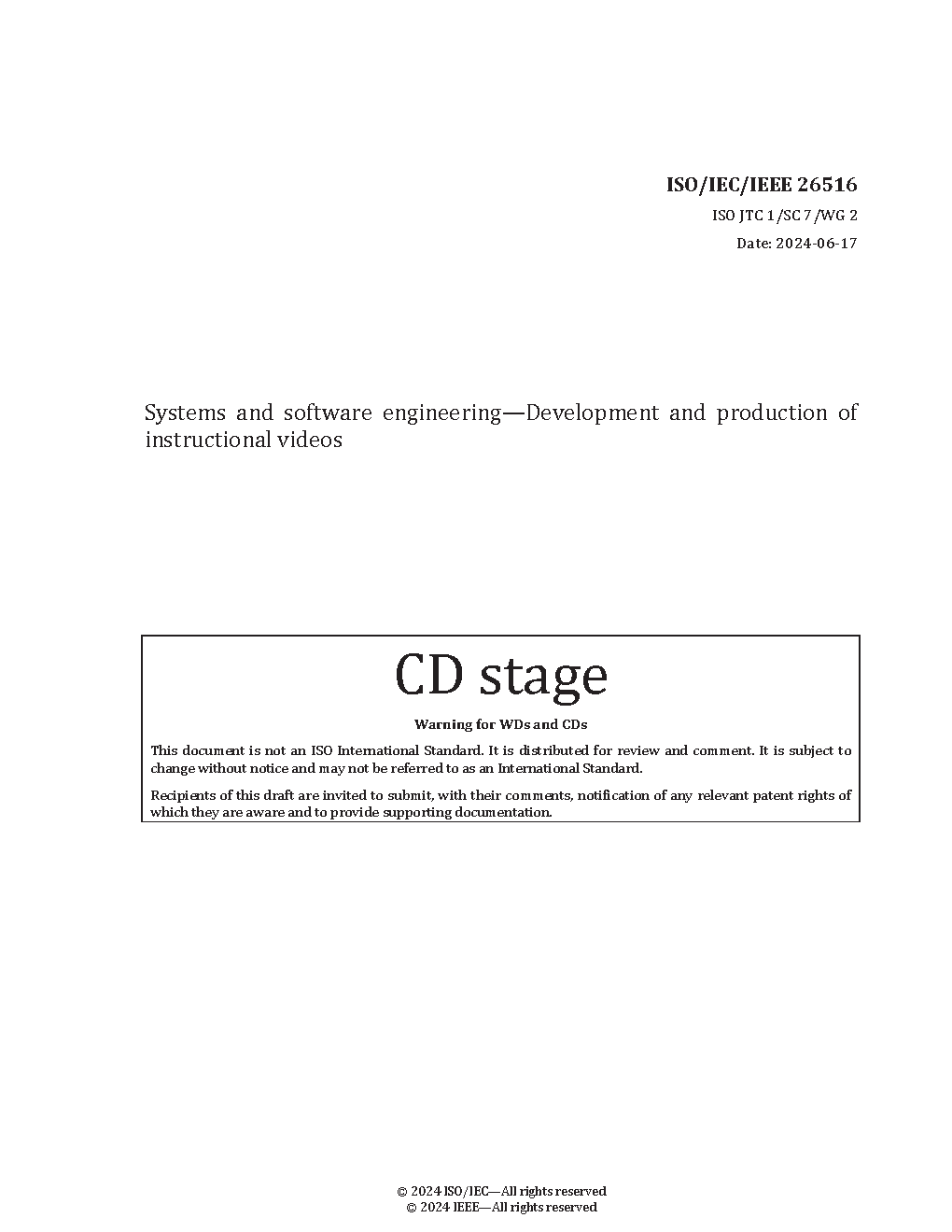ISO/IEC/IEEE Approved Draft International Standard - Systems and software engineering -- Development and production of instructional videos