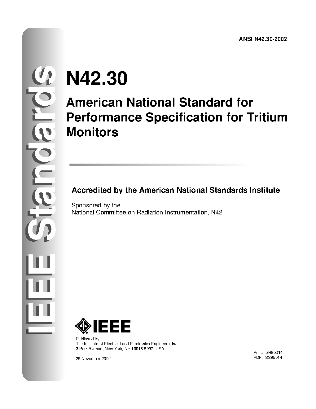 The performance requirements for tritium monitors used for monitoring airborne tritium radioactivity are provided in this standard. It also provides test methods for establishing a monitor™s performance characteristics.