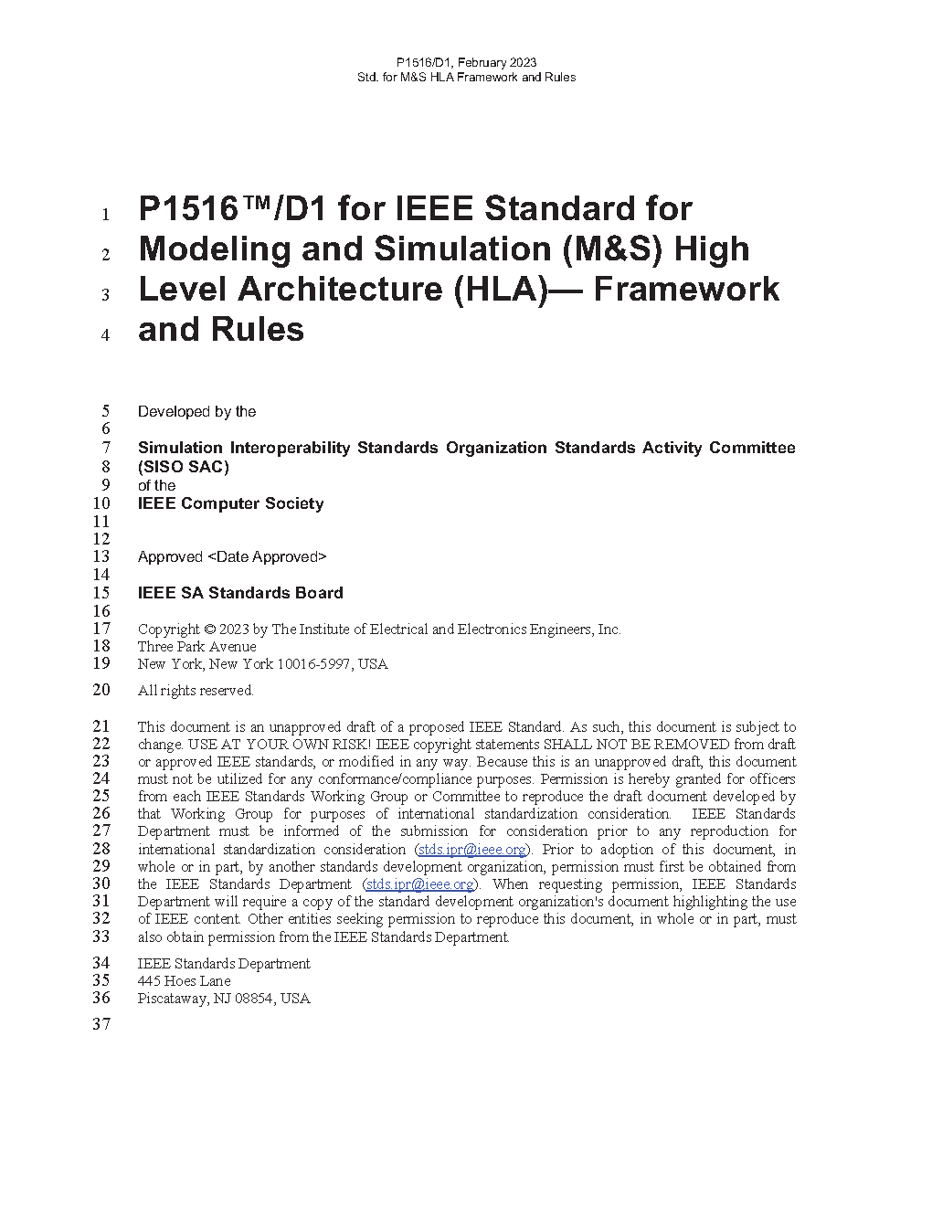 IEEE Draft Standard for Modeling and Simulation (M&S) High Level Architecture (HLA)-- Framework and Rules