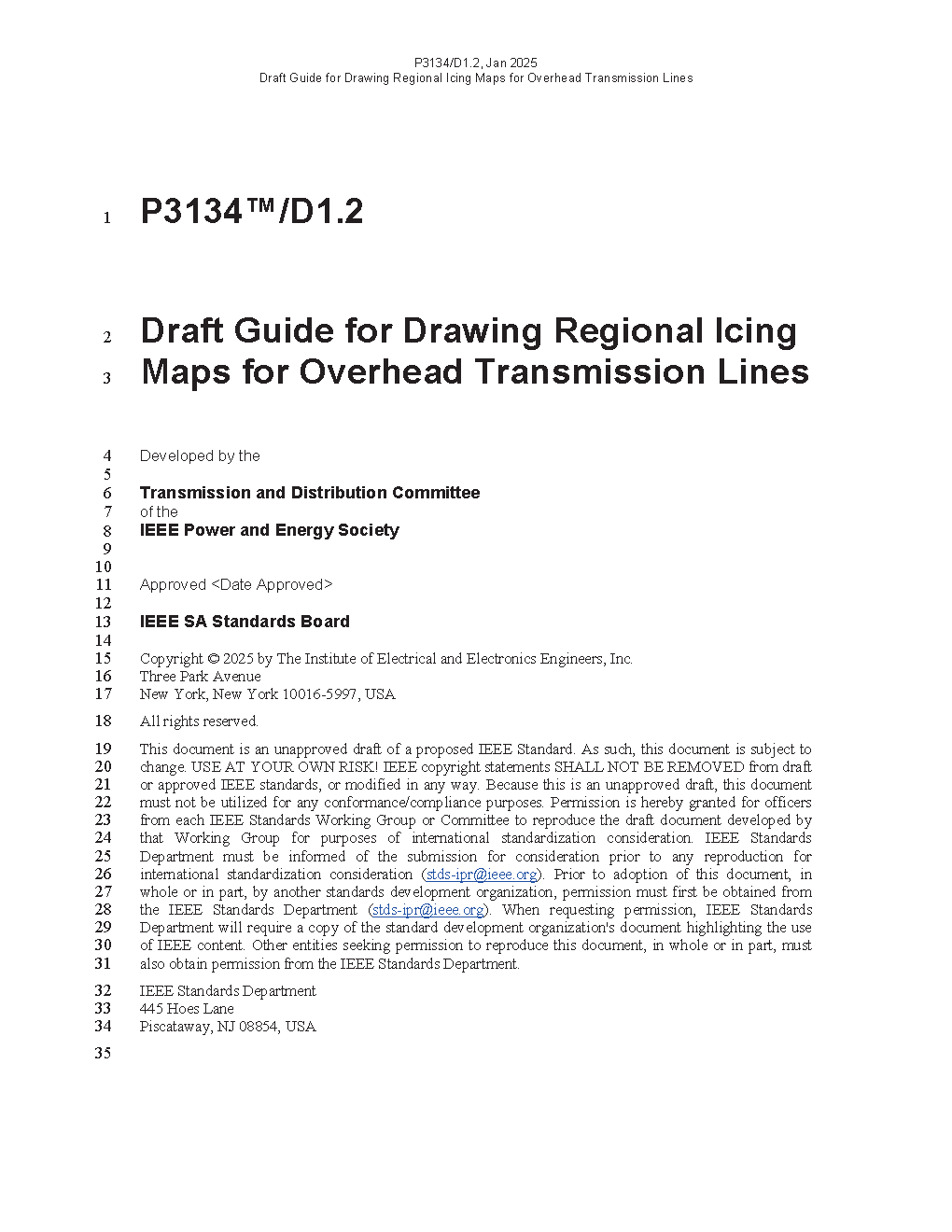 IEEE Draft Guide for Drawing Regional Icing Maps for Overhead Transmission Lines